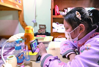 一名上海小学生在家中上网课。新华社发
