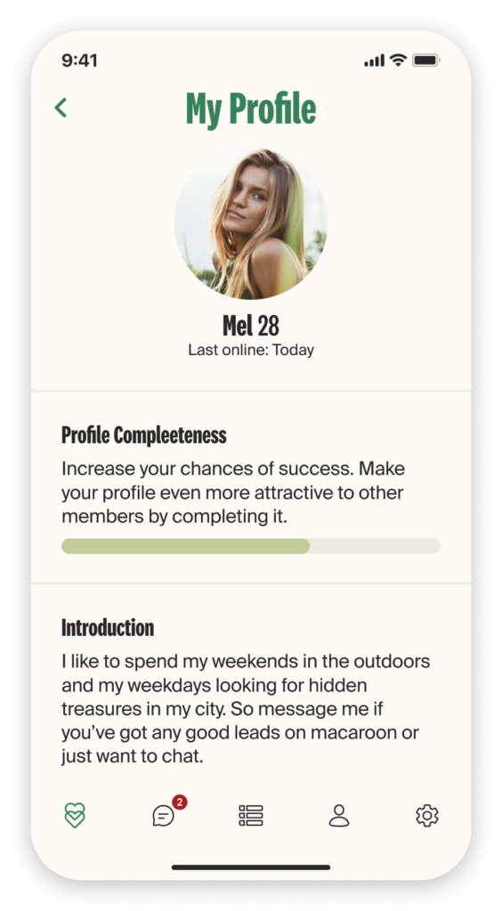 The ‘about me’ sections on a dating profile are your chance to flesh out what it is that makes you special. We’ve structured ours in an engaging question-answer format so it’s not too text heavy. Members can also directly interact with these answers by complimenting them, expanding on our platform’s ability to create connections in more ways than just text.