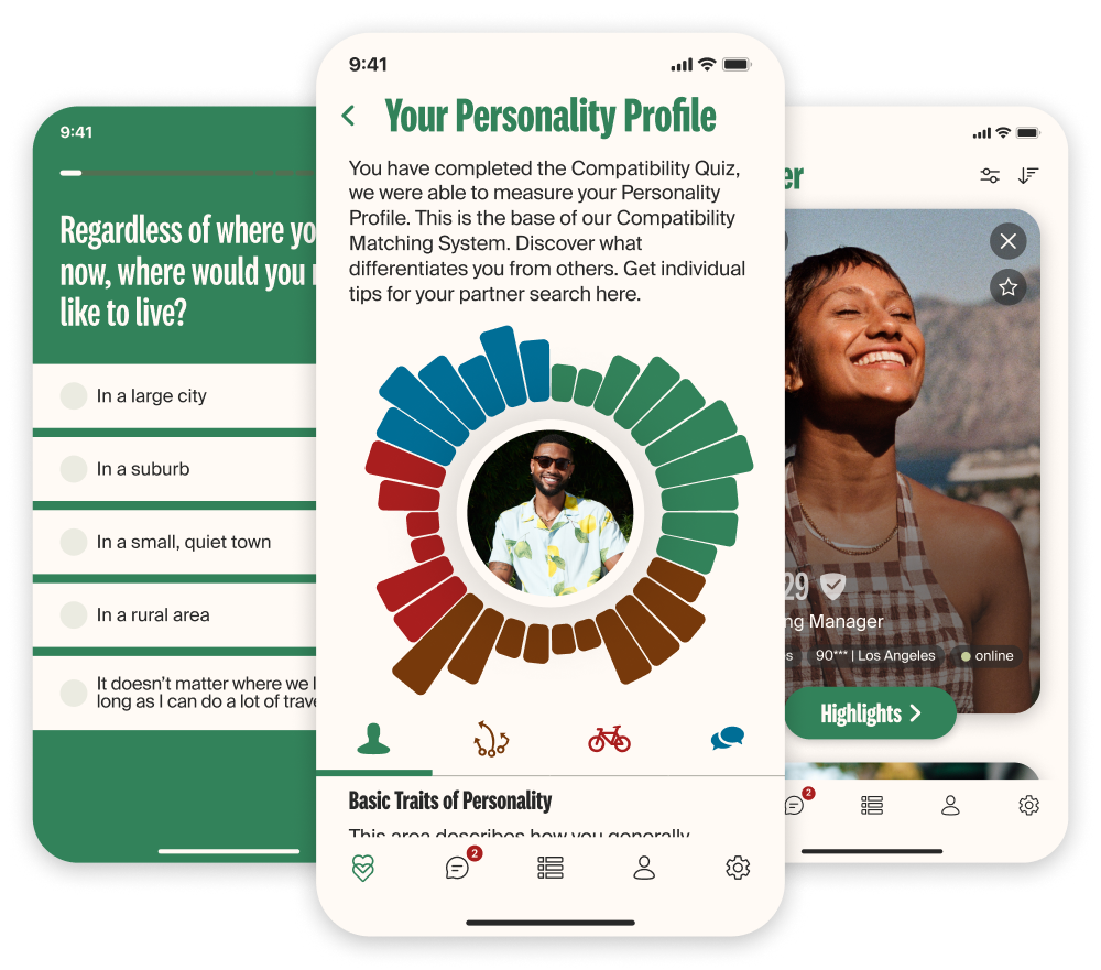 - Quiz answers also create your unique Personality Profile, which helps you learn more about yourself and better understand what you’re looking for in a relationship