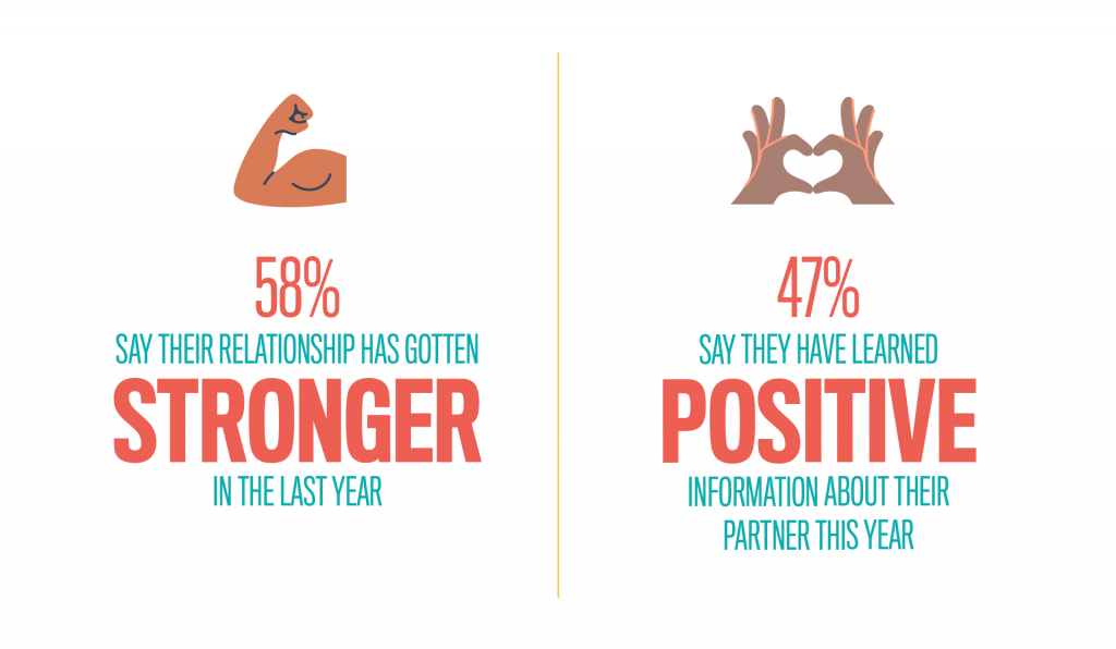 Despite life in lockdown, the COVID-19 pandemic had a positive impact on romantic relationships this past year.