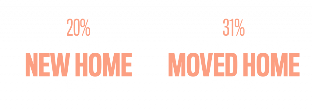 Up-leveling living spaces became important. The majority of people have spent time and energy on their homes in 2020, with reorganization and redecoration quite common among couples.